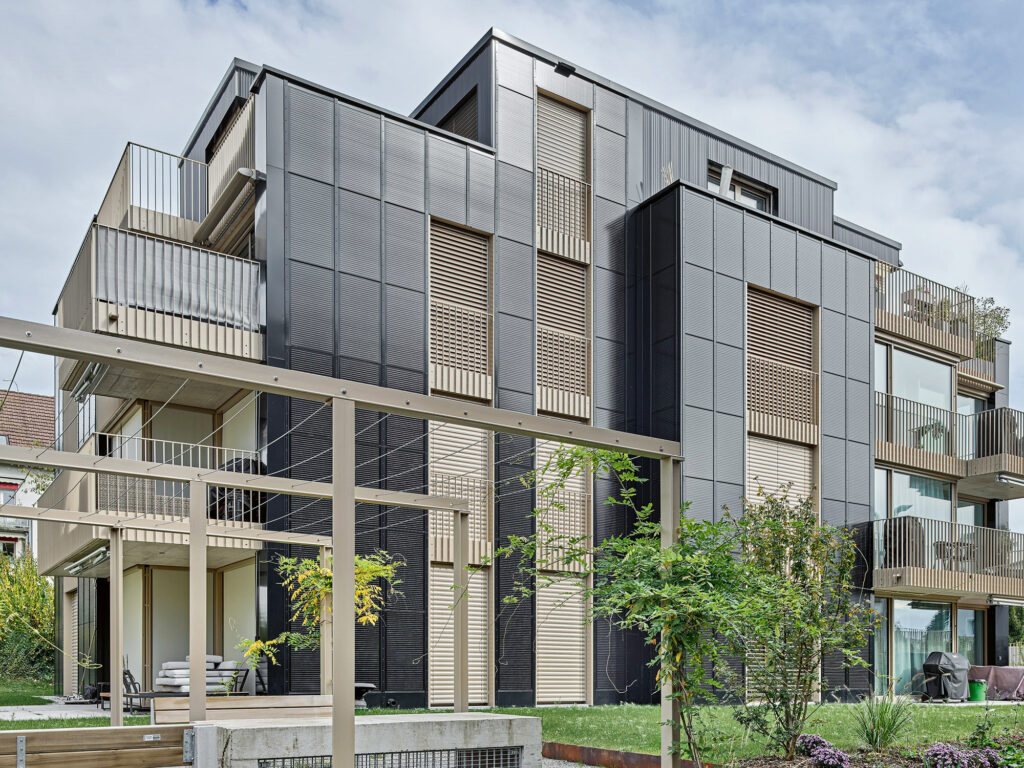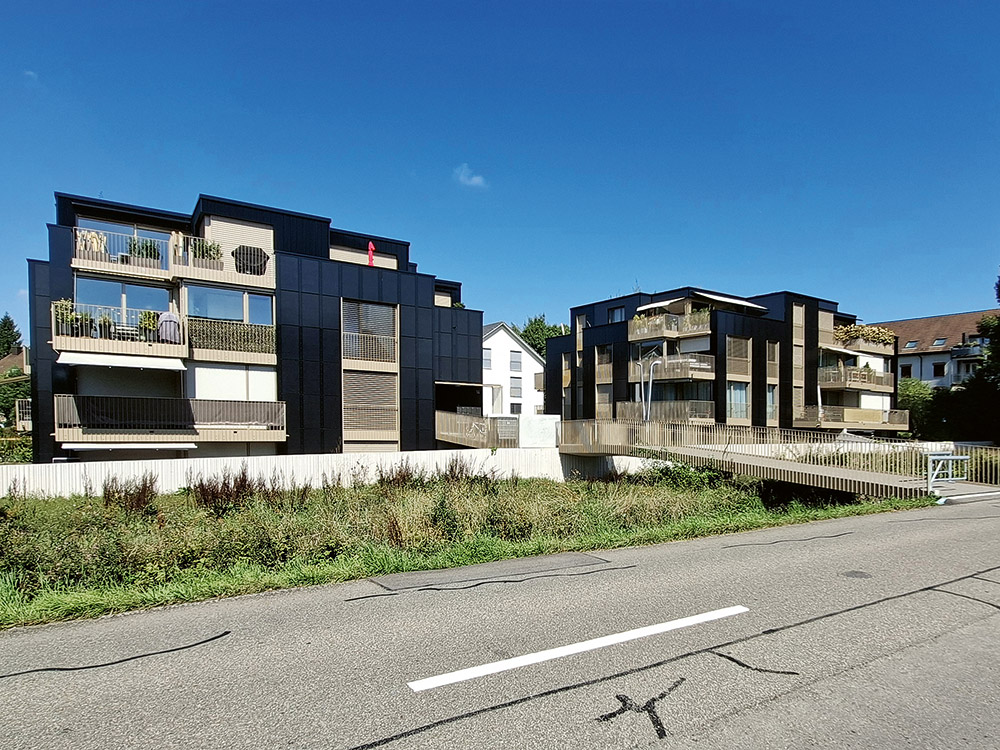 Die kleine Siedlung umfasst 22 Mietwohnungen. Sie bieten den konventionellen Komfort, den man heute von Mehrfamilienhäusern erwartet. Noch nicht Standard sind CO2-gesteuerte Lüftungen, Wasserspararmaturen oder Duschen mit Wärmerückgewinnung. Dass hier besonders energiesparende Wege eingeschlagen wurden, liegt an der Bauherrin, der W. Schmid + Co. Über sie besteht eine direkte Beziehung zum Engagement der Umwelt Arena Schweiz, der Nachhaltigkeitsplattform in Spreitenbach, die dort fortlaufend Ausstellungen und Veranstaltungen rund um das Thema Nachhaltigkeit organisiert. Die Umwelt Arena Schweiz hat bereits verschiedene Wohnsiedlungen der W. Schmid + Co. im Grossraum Zürich eng dokumentiert und begleitet. Eine entsprechende Ausstellung in der Umwelt Arena in Spreitenbach ist auch diesem Projekt gewidmet. Sie vermittelt vor allem Bauwilligen und Investitionsfreudigen, aber auch allen anderen, praxisnah und nachvollziehbar, wie nachhaltiges Bauen der Zukunft aussieht. Für Gruppen sind Führungen auf Anfrage möglich.