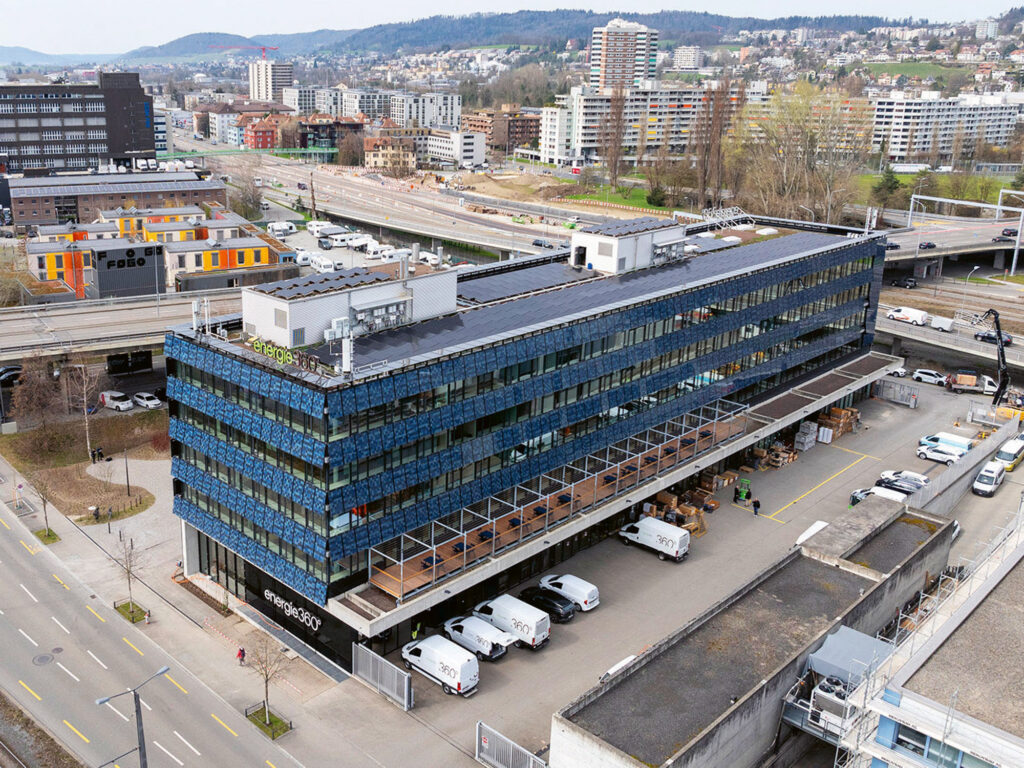 Die Photovoltaik (PV) bildete bei der Instandsetzung einen Schwerpunkt. Michael Baumer, Vorsteher der Industriellen Betriebe und Verwaltungsratspräsident von Energie 360°: «Künftig produziert Energie 360° rund die Hälfte des jährlichen Energiebedarfs ihres Gebäudes selbst.» Und Jörg Wild, CEO von Energie 360°, betont: «Die Dach- und Fassadensolaranlagen mit 1600 Elementen machen unseren Hauptsitz in Altstetten zum grünen Kraftwerk. Es erzeugt etwa 325 Megawattstunden erneuerbaren Strom pro Jahr.»